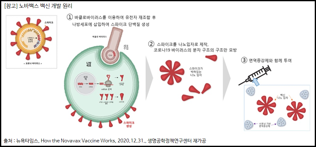 노바백스는 바이러스 단백질 조각을 외부에서 배양해 면역 증강제와 함께 인체에 직접 주입하는 백신 형태인 '재조합 단백질' 백신입니다. 이 방법은 기존에 B형 간염이나 자국 경부암 백신, 인플루엔자 백신에도 사용된 익숙한 방식이라고 합니다.
