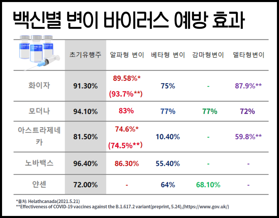 백신별 변이바이스에 대한 예방효과 | 변이 바이러스 종류 및 현황