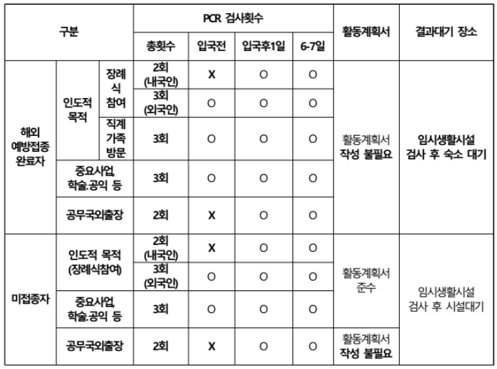 ② 해외에서 접종 마치고 2주가 지난 재외국민, 유학생 등이 자신이나 배우자의 직계 가족을 방문하거나, 중요 사업과 학술, 공익 등 목적으로 국내에 들어오는 경우 (7월 1일부터 시행)