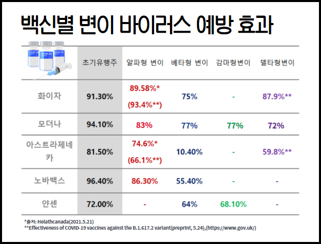 백신별 변이바이러스에 대한 예방효과 | 변이 바이러스 종류 및 현황
