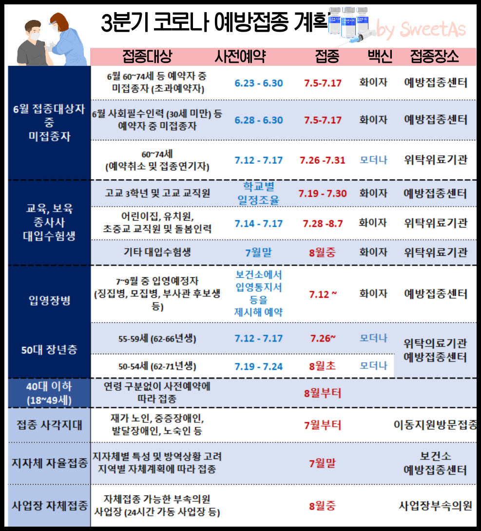 코로나 백신 접종 순서 | 3분기 접종 계획 한눈에 확인