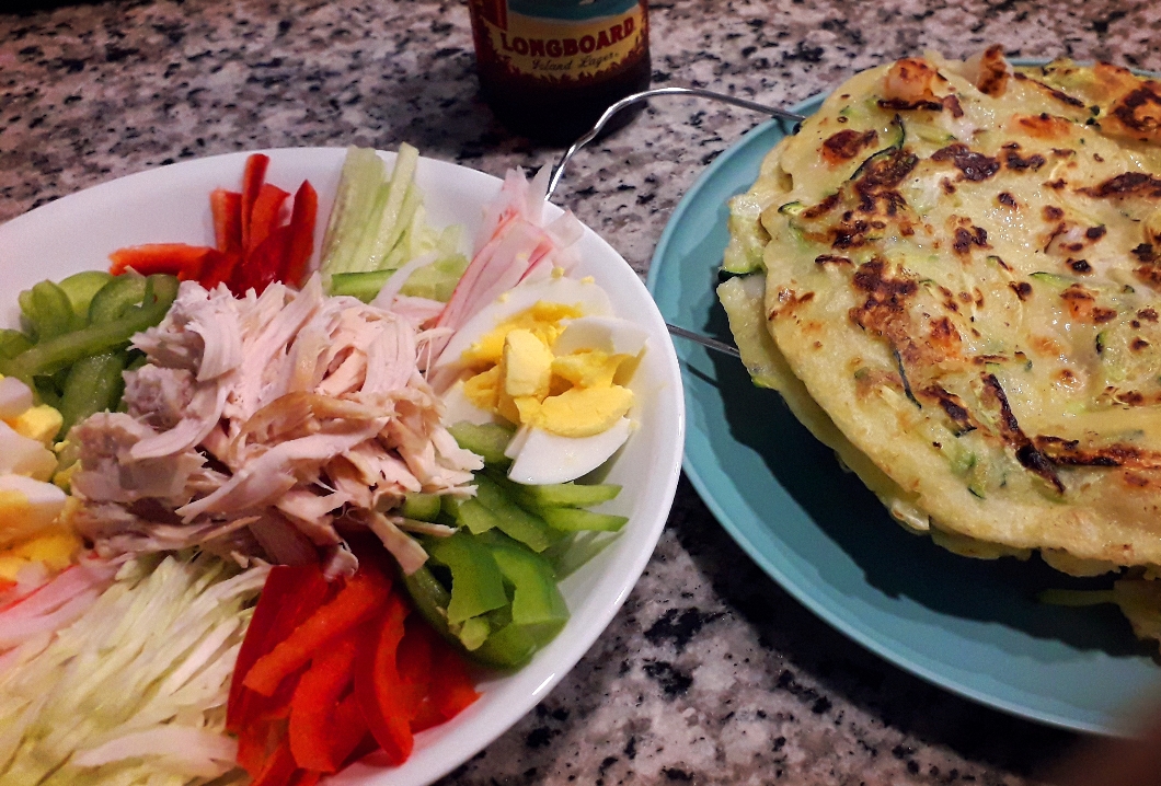 닭가슴살과 야채만 먹으면 섭섭해서 해물 부침개랑 맥주랑 먹었는데 진짜 최고.