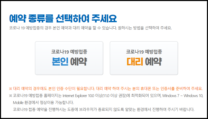 3. 대리예약할 것인지 본인 예약할 것인지 선택합니다.