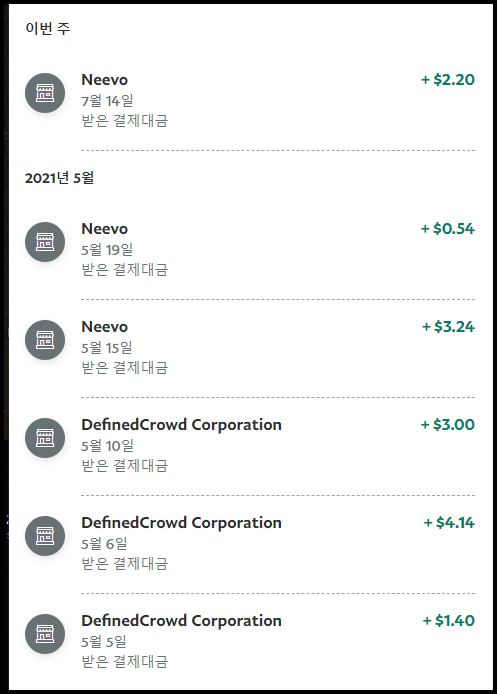 Neevo라는 글로벌 데이터 라벨링 사이트를 알게 된 후 약간의 라벨링을 해봤습니다. 제가 할 수 있는 프로젝트가 많지 않았고, 그마저도 중간에 닫혀서 작업량이 정말 적었는데요. 입금이 잘 될까