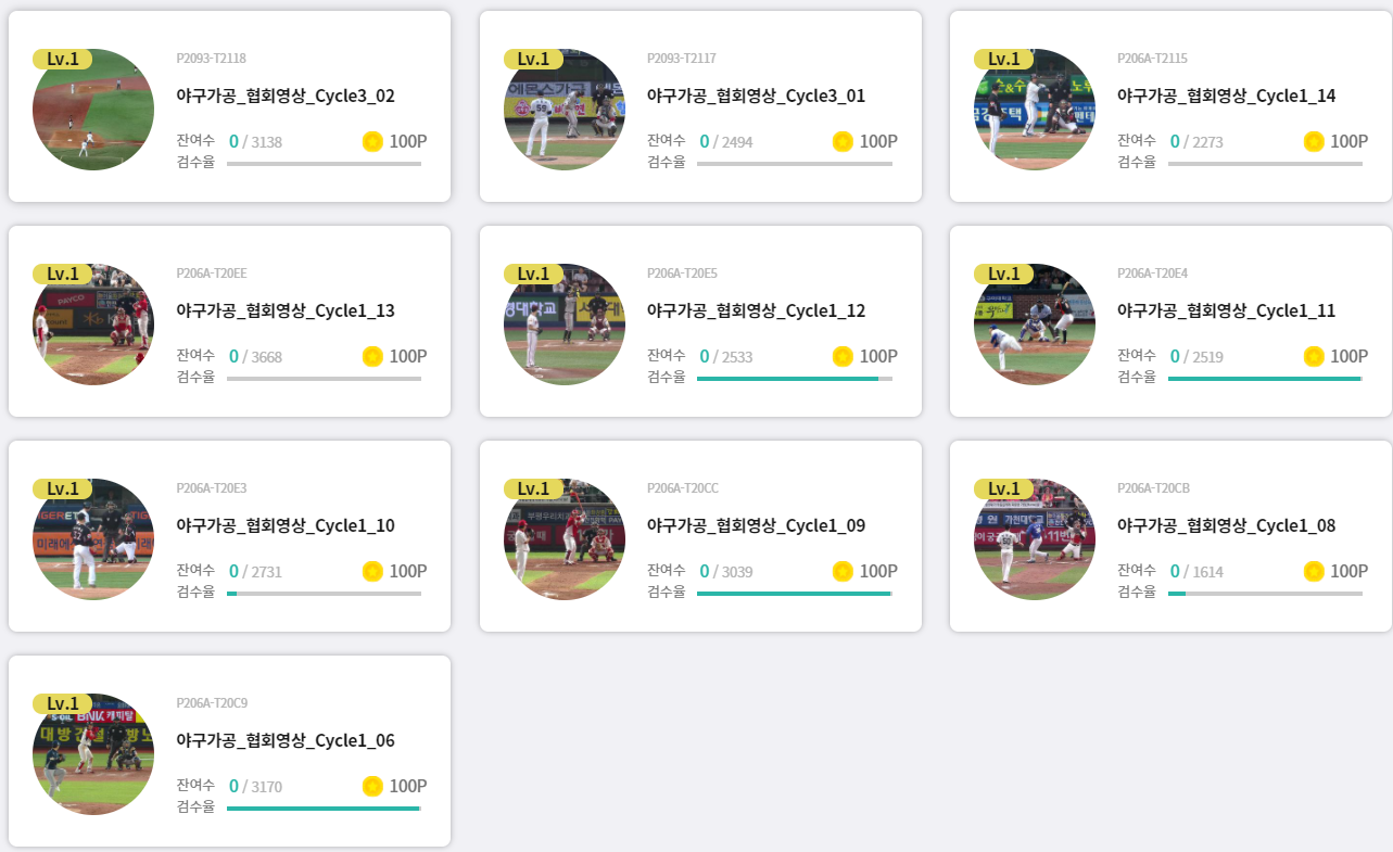 마이크라우드에는 야구 영상 바운딩 작업이 매일 조금씩 올라오고 있는데요. 정말 금방 사라집니다.