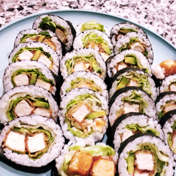 안녕하세요. 저희는 장 볼 때마다 두부는 항상 사 오거든요. 두부를 좋아하기도 하지만, 오래 보관이 안되니까 억지로라도 두부를 챙겨 먹게 되더라고요. 콩 단백질이 여러모로 좋다고 해서 챙겨 먹으려고 하거든요. 예전에 일식집에서 두부를 전분가루에 묻혀서 폰즈소스를 부어 먹은 적이 있는데 정말 맛있더라고요. 그걸 응용해서 두부에 부침가루를 묻혀 튀겨서 달달한 간장소스에 버무려 김밥을 만들어 봤습니다. 정말 기대 이상이었습니다.
