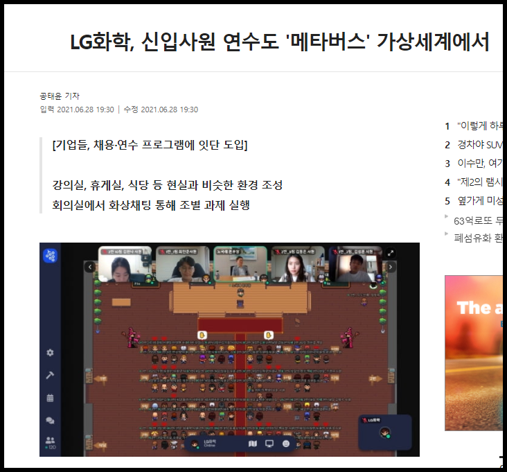 얼마 전 기업들이 신입사원 연수를 메타버스 가상세계에서 진행했다고 합니다.