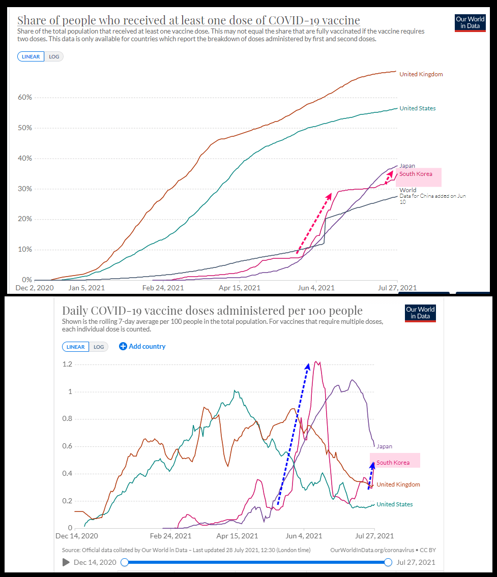 우리나라는 50대 백신이 시작되면서 다시 백신 접종에 박차를 가하고 있는 모습입니다. 변이 바이러스와 무더위로 부터 안전하셨으면 좋겠습니다.