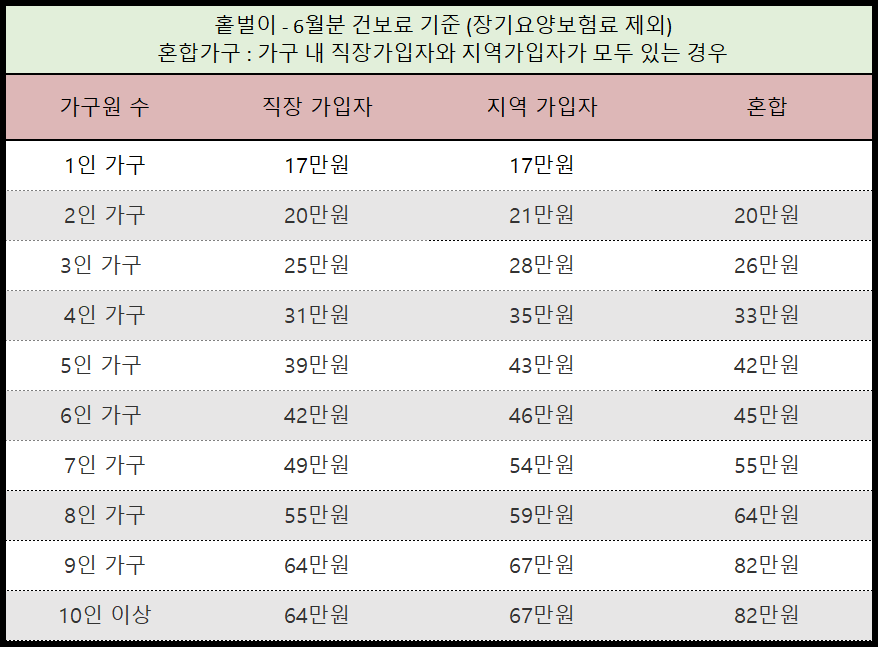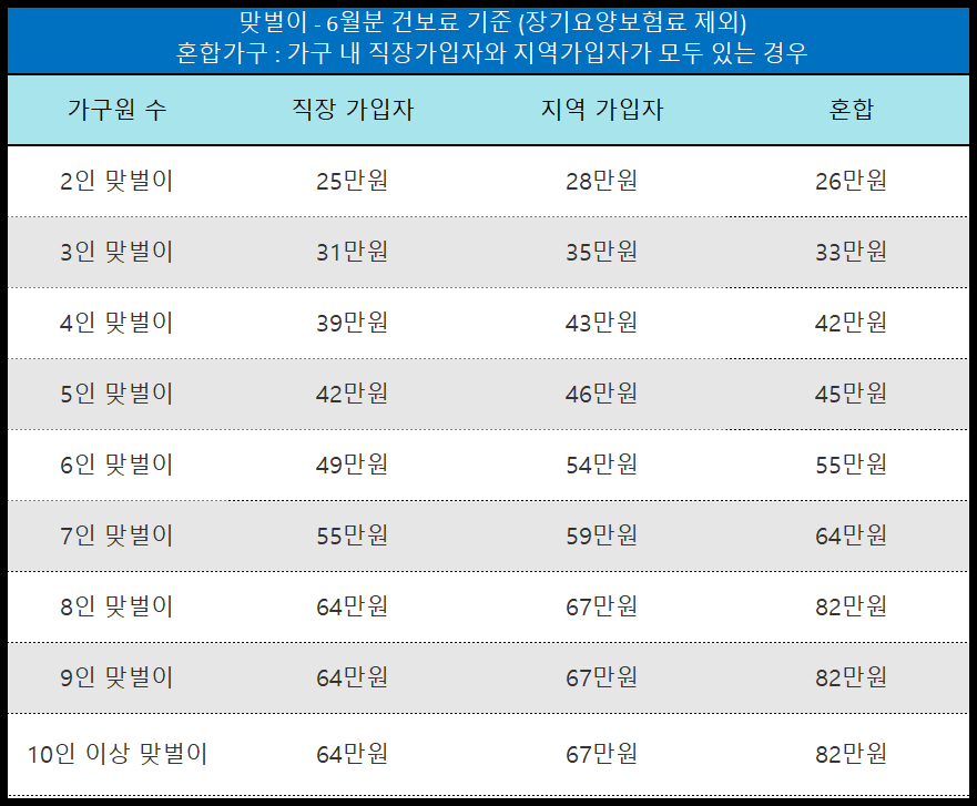 맞벌이 건보료 기준액 (6월 건보료 본인부담금 기준)