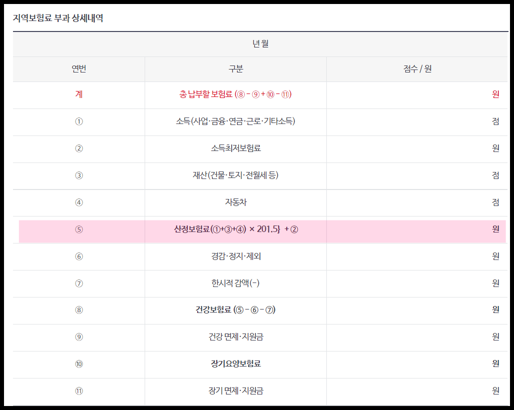 4. 조회 결과'에서 '상세내역'을 선택하면 '산정 건강보험료'를 확인할 수 있습니다. 아래 이미지에 표시해 놓은 부분의 금액을 확인하시면 됩니다.