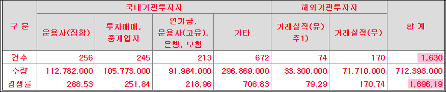 - 기관경쟁률 : 1,696:1로 매우 높은 수준.
