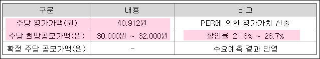 | 희망공모가밴드 | 30,000원 - 32,000원 |