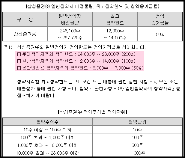 실리콘투 청약 증권사는 삼성증권과 미래에셋증권 2곳입니다. 두 증권사 모두 청약 수수료는 온라인, 일반 등급 기준으로 2,000원이고, 청약 증거금을 환불 시 징수하므로 따로 수수료는 입금하지 않아도 됩니다. 공모주가 배정이 안된 경우는 청약 수수료는 면제입니다.