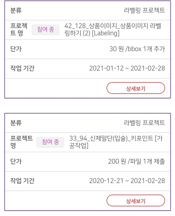 지금은 인물 키포인트 작업을 하고 있는데 단가가 300원에서 600원으로 인상됐네요. 마감이 얼마 남지 않아서 부지런히 작업해보려고요. 2월에는 조금더 라벨링 작업을 많이했고 걸린 시간도 기록해 뒀는데 조만간 궁금하신 분들을 위해 포스팅 하도록 하겠습니다.