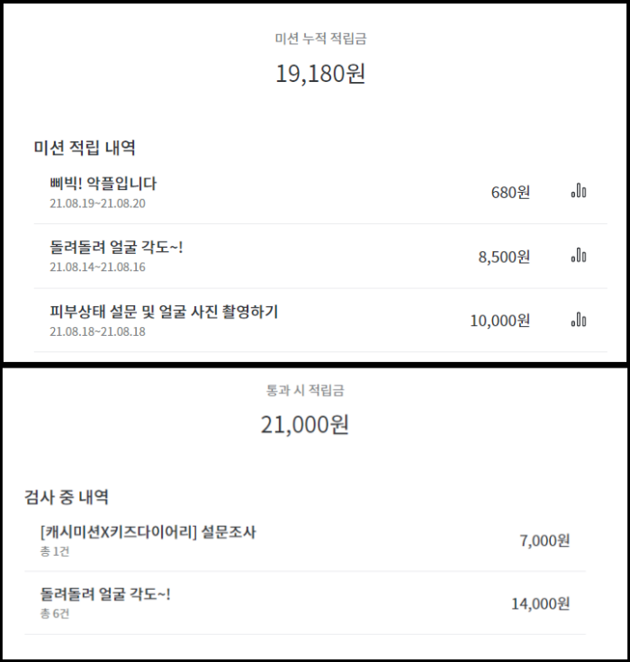 캐시미션 - 약 40,000원 (모두 통과 시)