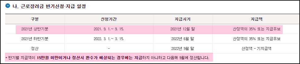 2021 근로장려금 반기신청 지급일, 지급액 계산 (근로장려금 산정표 첨부)