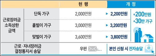 단, 2022년 1월 1일 이후부터는 연간 총소득액이 상향 조정되어서 근로장려금을 더 많은 가구가 받게 되고, 근로장려금 액수도 올라간다고 하니 반가운 소식입니다.