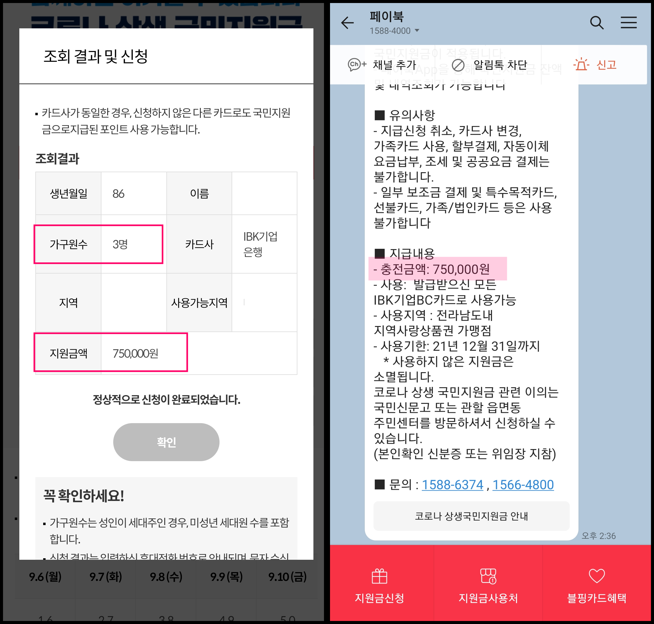 국민지원금 신청 비씨카드 후기, 75만원 입금됐어요! (5차 재난지원금 요일제)