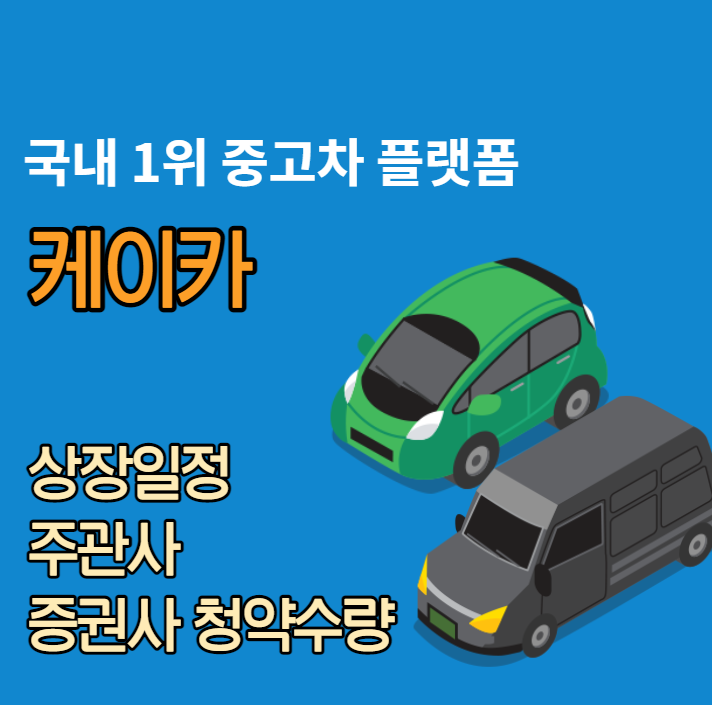 케이카는 중고차 매매업을 하는 기업이 코스피에 상장합니다. 중고차 시장점유율이 81%나 되는 국내 1위 중고차 플랫폼입니다. 투자회사인 한앤컴퍼니가 100% 지분을 보유하고 있어, 이번 공모 주식에서 구주매출이 90% 이상을 차지하고 있다는 점이 조금 놀라운 수치입니다. 오늘 케이카 공모주 상장 일정, 주관사, 증권사별 청약 수량 및 수수료, 유통가능 물량 체크해보도록 하겠습니다.
