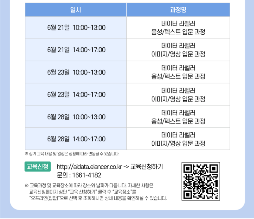 데이터 라벨링 무료 교육 오픈, 6월 커리큘럼 교육 일정