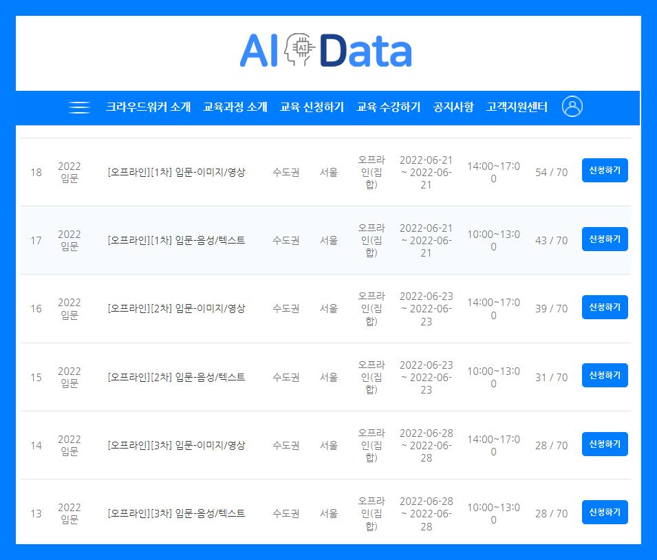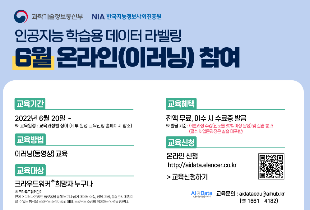 22년 데이터 라벨링 무료 교육 7월 일정 (온라인, 서울, 부산, 경기, 광주, 대구)