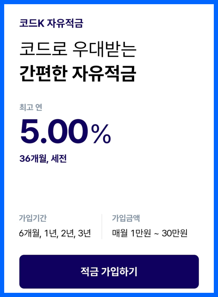 케이뱅크 고금리 적금 5%, 코드K자유적금