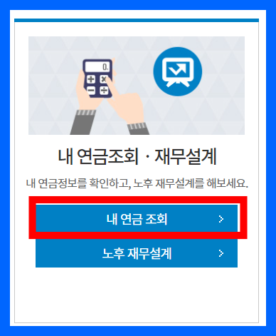 홈페이지에 들어가서 [내 연금 조회]를 누르면,