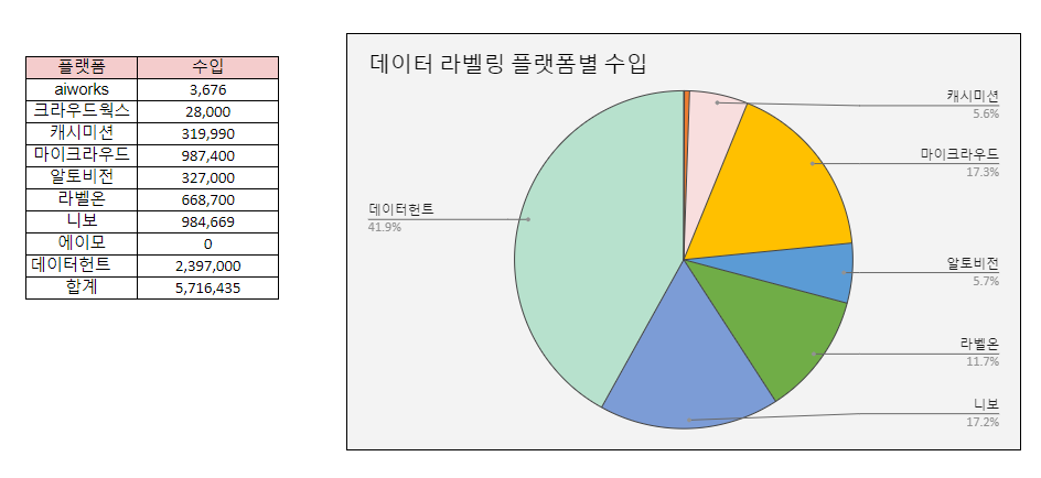 저의 부업의 주 수입원인 데이터 라벨링은 누구나 가능한 시간에 할 수 있다는 장점이 있어요. 일한 만큼 벌어가는 거죠. 데이터 라벨링 업계에서는 정부과제를 수행하는 업체가 많아서 데이터 라벨링 성수기와 비수기가 있습니다. 정부과제는 6월-12월 사이에 대부분 이루어지거든요. 물론 1년 내내 일은 있지만, 성수기에 단가가 좋은 작업들이 많이 있어요. 비수기에 작업 단가는 너무 짜서, 일하느니 그냥 다른 것 하던지 쉬자라는 생각도 들더라고요.