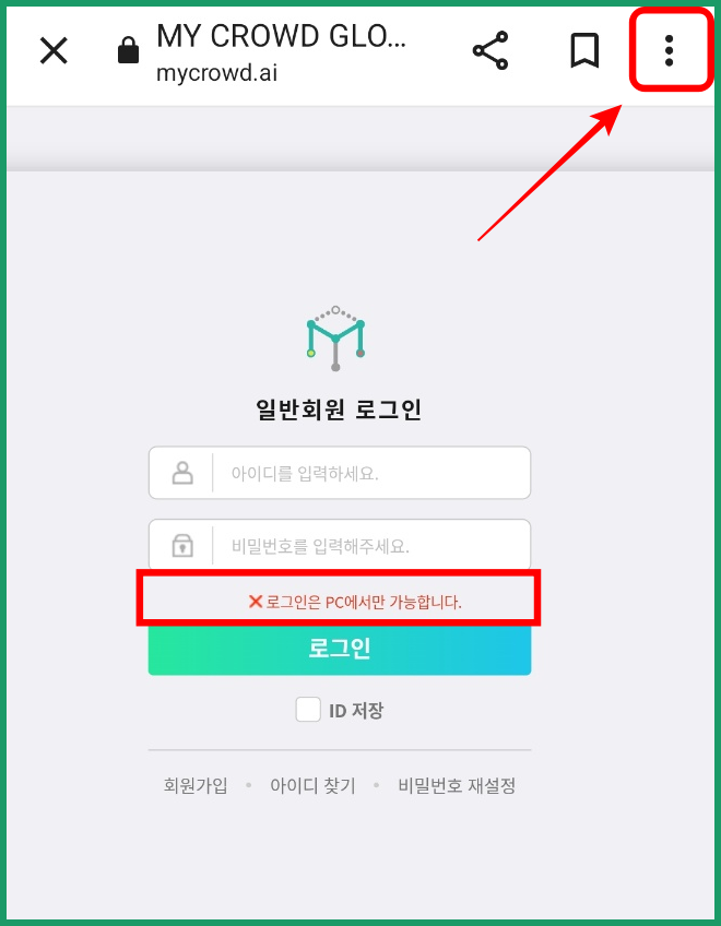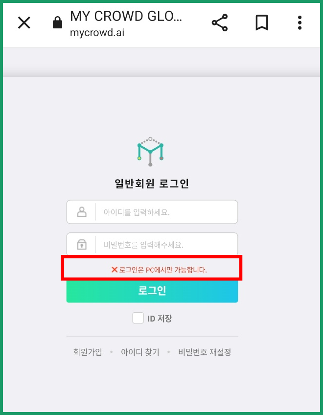 '로그인은 PC에서만 가능합니다'라고 뜰 거예요.