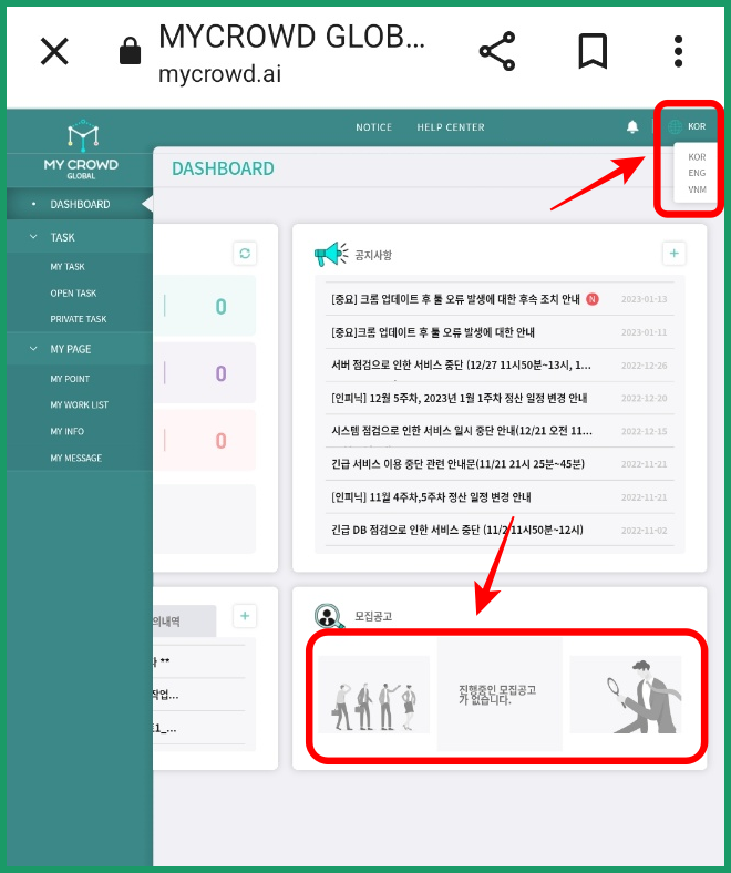 활발한 데이터 라벨링 플랫폼 중 하나인 마이크라우드라는 업체가 있습니다. 사이트에 모집공고가 뜨고, 공고 바로 아래 "지원하기" 버튼이 있어서 간편하게 지원할 수 있는데요. 오늘은 폰에서 마이크라우드 로그인 후 지원하는 법, 모집공고가 안보일 때 해결하는 방법 소개해 볼게요.