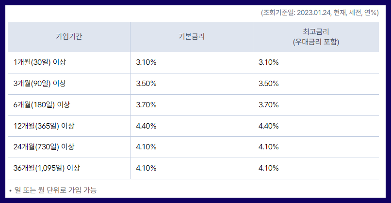- 가입금액 제한 없으나, 우대금리는 5천만원까지만 적용.
