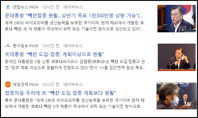 5월 3일 뉴스에 따르면 문대통령은 "인구 두 배 분량의 백신을 이미 확보했고 4월 말까지 300만명을 접종하겠다는 목표를 10% 이상 초과 달성했다"고 밝혔습니다. 5월에도 화이자 백신이 안정적으로 공급될 것이고, 아스트레제네카 백신도 계획보다 더 많은 물량이 들어올 거라고 청와대에서 주재한 신종 코로나바이러스 감염증(코로나19) 대응 특별방역점검회의에서 설명했다고 합니다.