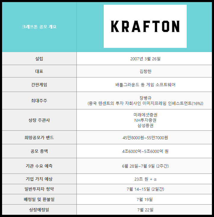 크래프톤 상장, 일정, 주관사, 공모가, 증권사별 청약수량